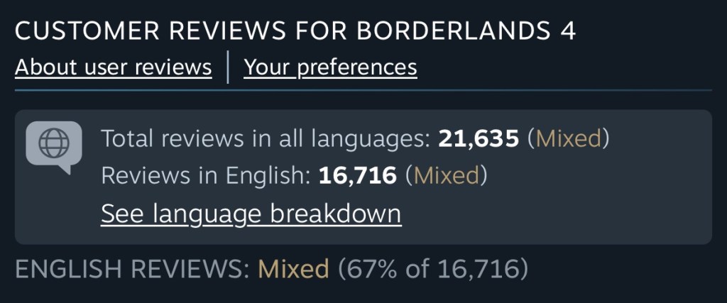 Borderlands 4 has arrived, and while Pandora’s vaults are presumably full of loot, PC players are full of something else: complaints. If you’ve been anywhere near Steam in the last 24 hours, you already know the vibe — Borderlands 4 is off to a rocky start, with “Mixed” reviews piling up.